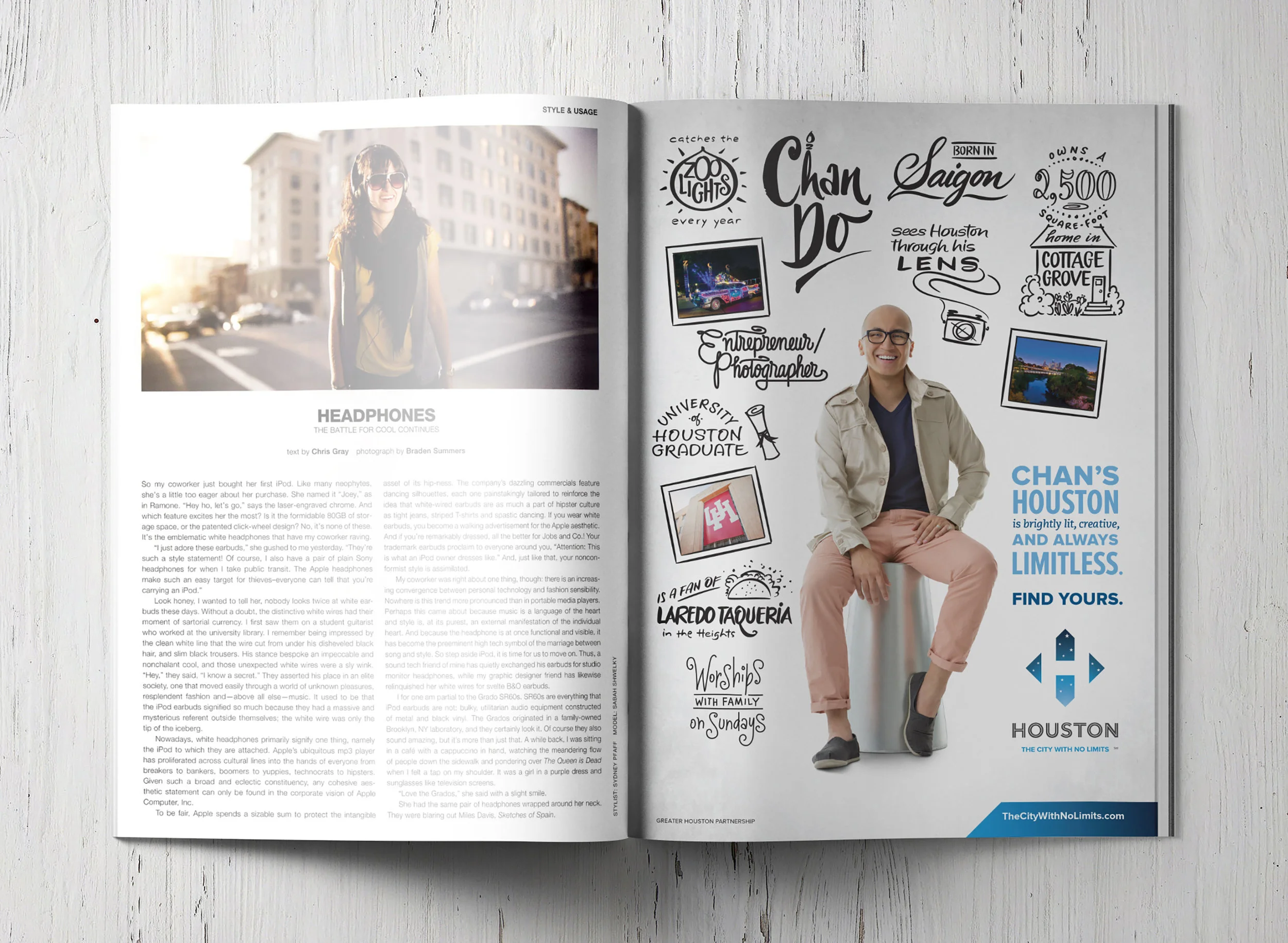 To represent the city we selected a handful of people that are well known for their work in the local communities. Then created ads that illustrated what each person loves about Houston.